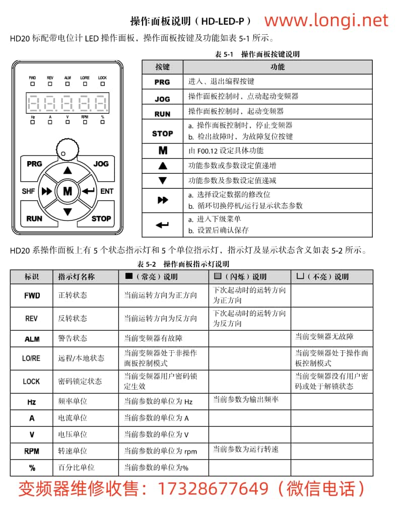 海浦(pǔ)蒙特HD20係列變頻器(qì)用戶手冊的操(cāo)作指南